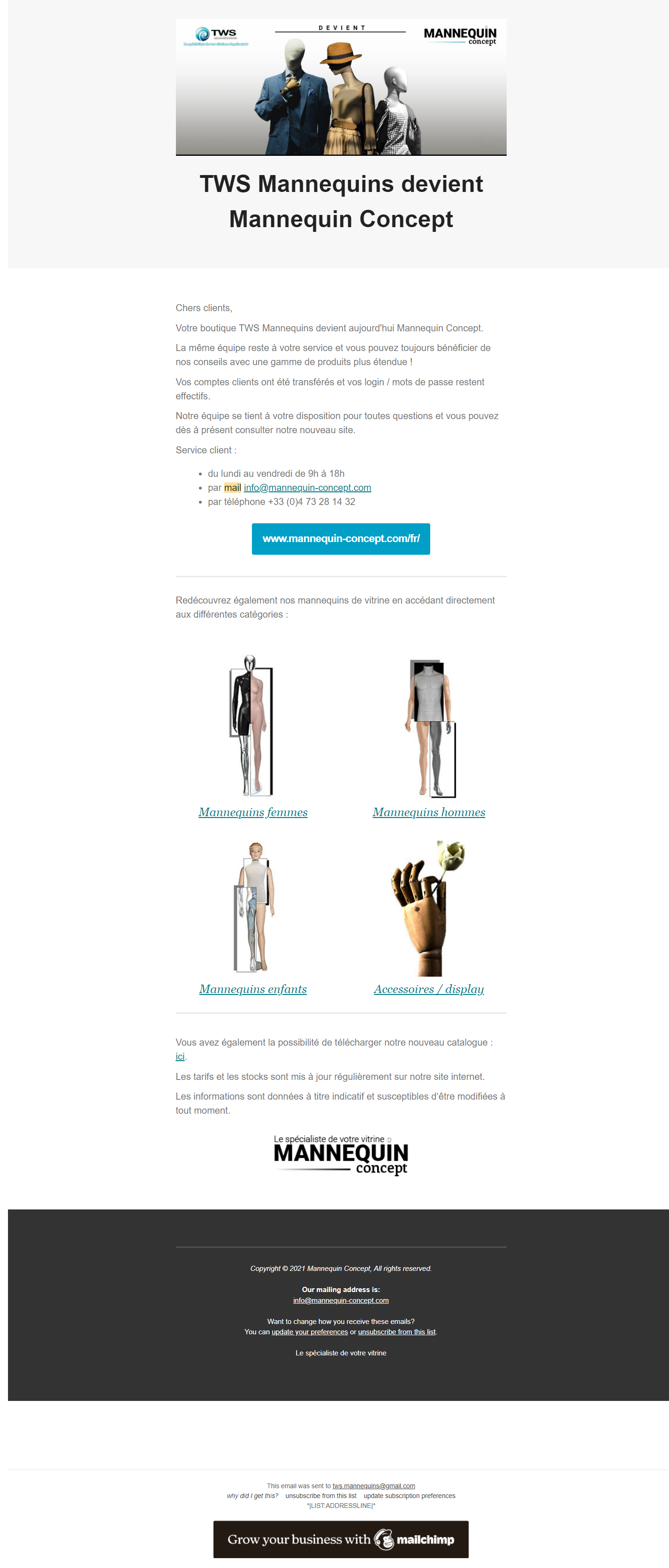 Mannequin concept est initialement connu sous le nom de TWS Mannequins. Ainsi, j'ai eu en charge la refonte de l'identité visuelle.